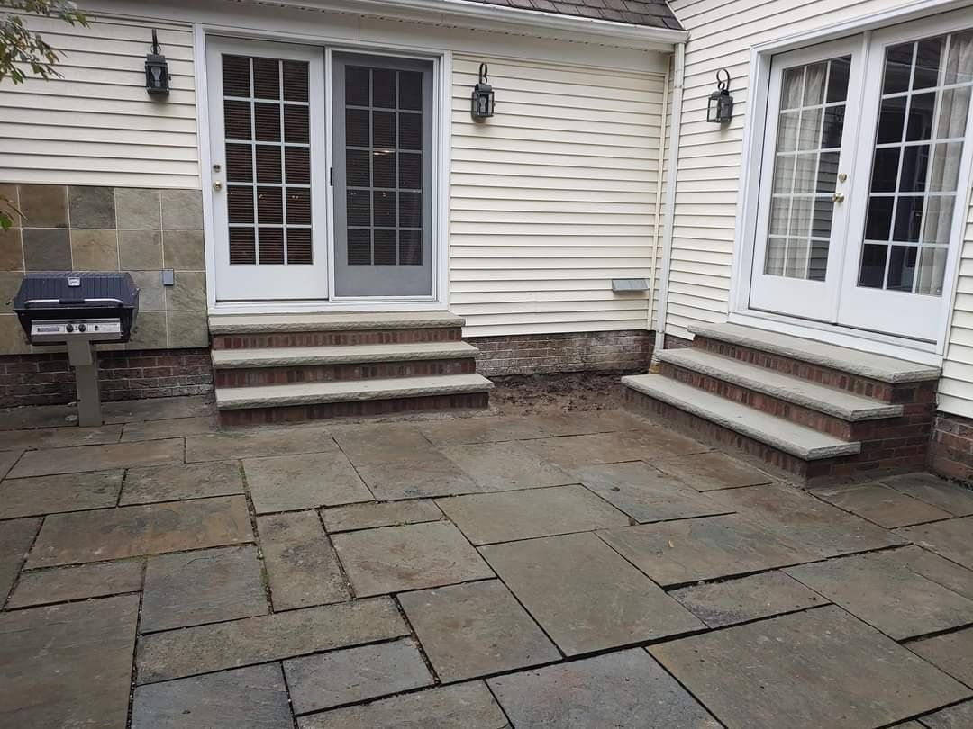 Serenity Stone Masonry work started with tuck-pointing three tall chimneys. They additionally rebuilt 3 entrance steps and a patio. These were build with bluestone but had settled and required rebuilding. Serenity was able to carefully remove and reuse the bluestone, retaining the character of the home. Matt & crew was hard-working and professional. Work was done on schedule, as discussed, Work areas were maintained clean. We will use Serenity on future projects.